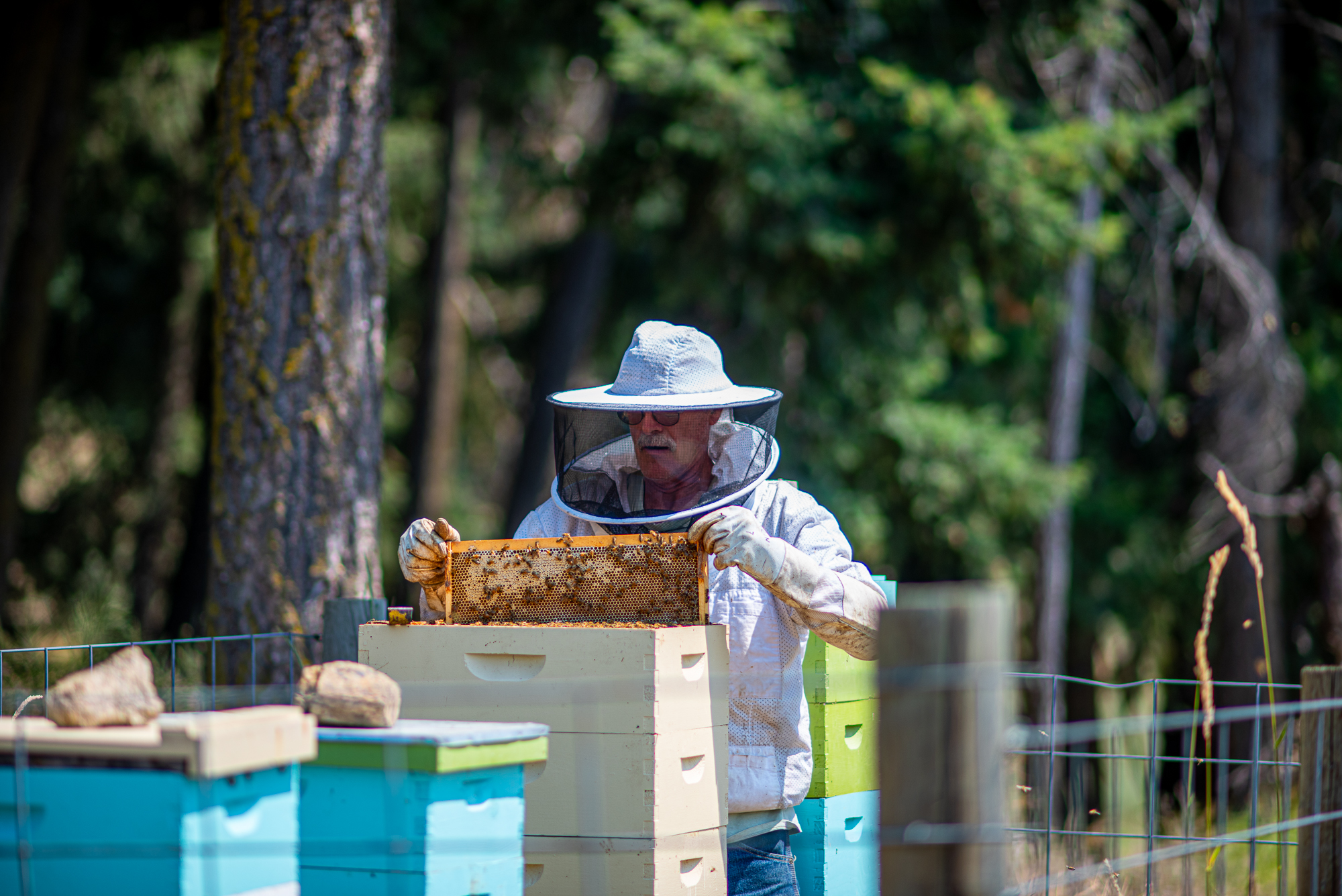 John, the ranch’s, “cow whisperer” manages daily grazing, calving, and herd health, working side-by-side with his son. After retiring from his career, he pursued his longtime dream of beekeeping, apprenticing under a master and now tending thriving hives of his own. The bees roam freely across the ranch, foraging among wildflowers and cover crops restored by the grazing system. The result is raw, small-batch honey, rich, golden, and layered with the flavors of North Idaho flora.