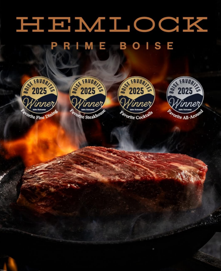 Hemlock is a downtown Boise steakhouse that highlights thoughtful sourcing, seasonal ingredients, and Idaho and regional partnerships whenever possible. Our menu regularly features local mushrooms, bakery items, produce, and selected Idaho beverage offerings, alongside an elevated dining experience rooted in hospitality and Northwest flavor. We also offer private dining, group dining, and special event experiences in downtown Boise.