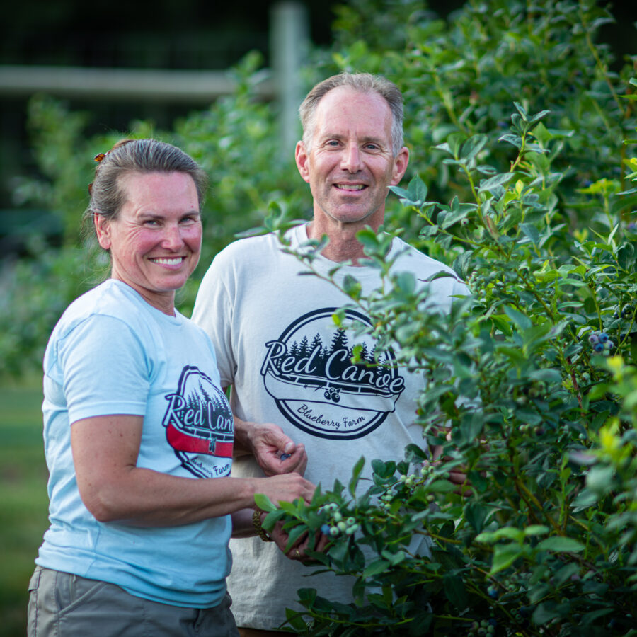 The Pointers named their farm after their red canoe, recalling their summer paddling down the entire length of the Columbia River back in 1992. The Pointers didn’t have any previous canoeing experience—just thought it was an adventurous idea. Planting blueberries was like that, too.