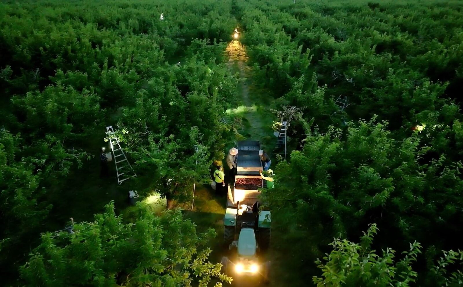 A workday typically starts long before sunrise. By 2 a.m., orchard crews are suited up in miner-style lights and long sleeves, moving through rows of cherry trees while Jamie Mertz, a fourth-generation steward, coordinates the day’s harvest. During peak season, the team brings in 130,000 to 150,000 pounds of cherries each day—a grueling pace, but one guided by experience and a deep knowledge of the fruit.